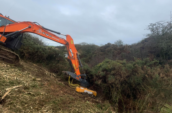 Mulching is available which can cut and shred heavy vegetation e.g. gorse/rhododendrons and small regen areas of woodland. We can supply this service with various types of machines operated by our highly skilled drivers.
